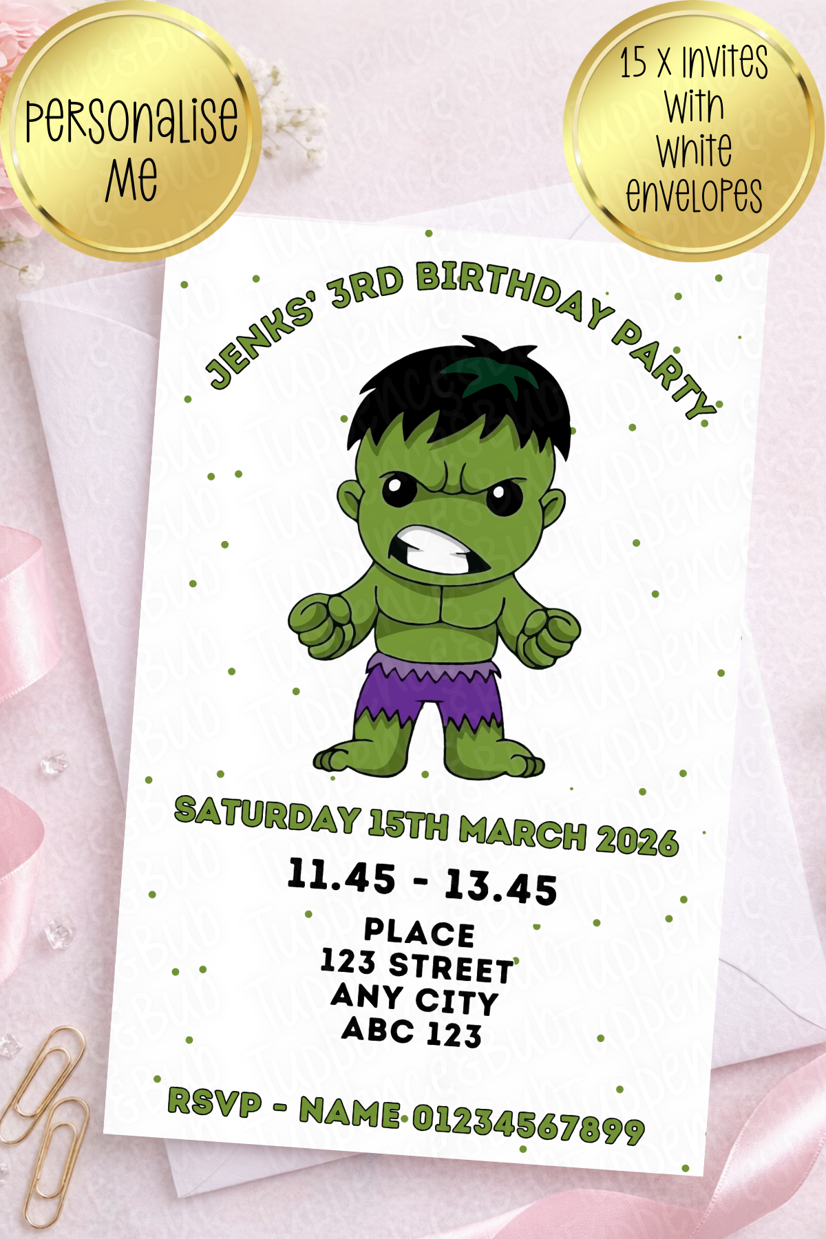 15 x Hulk Inspired Invitations