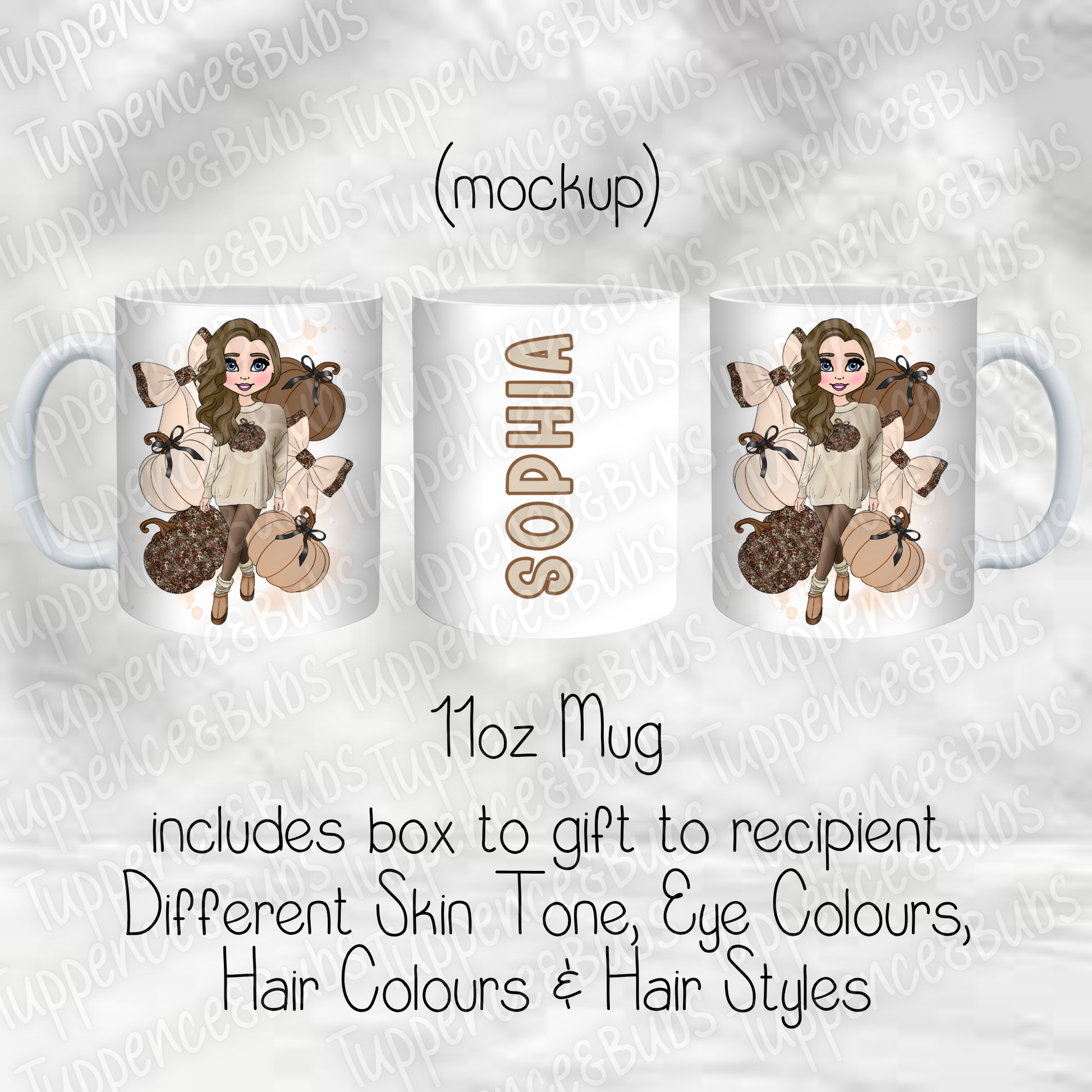 Beige & Brown Bow Pumpkin Themed Mug