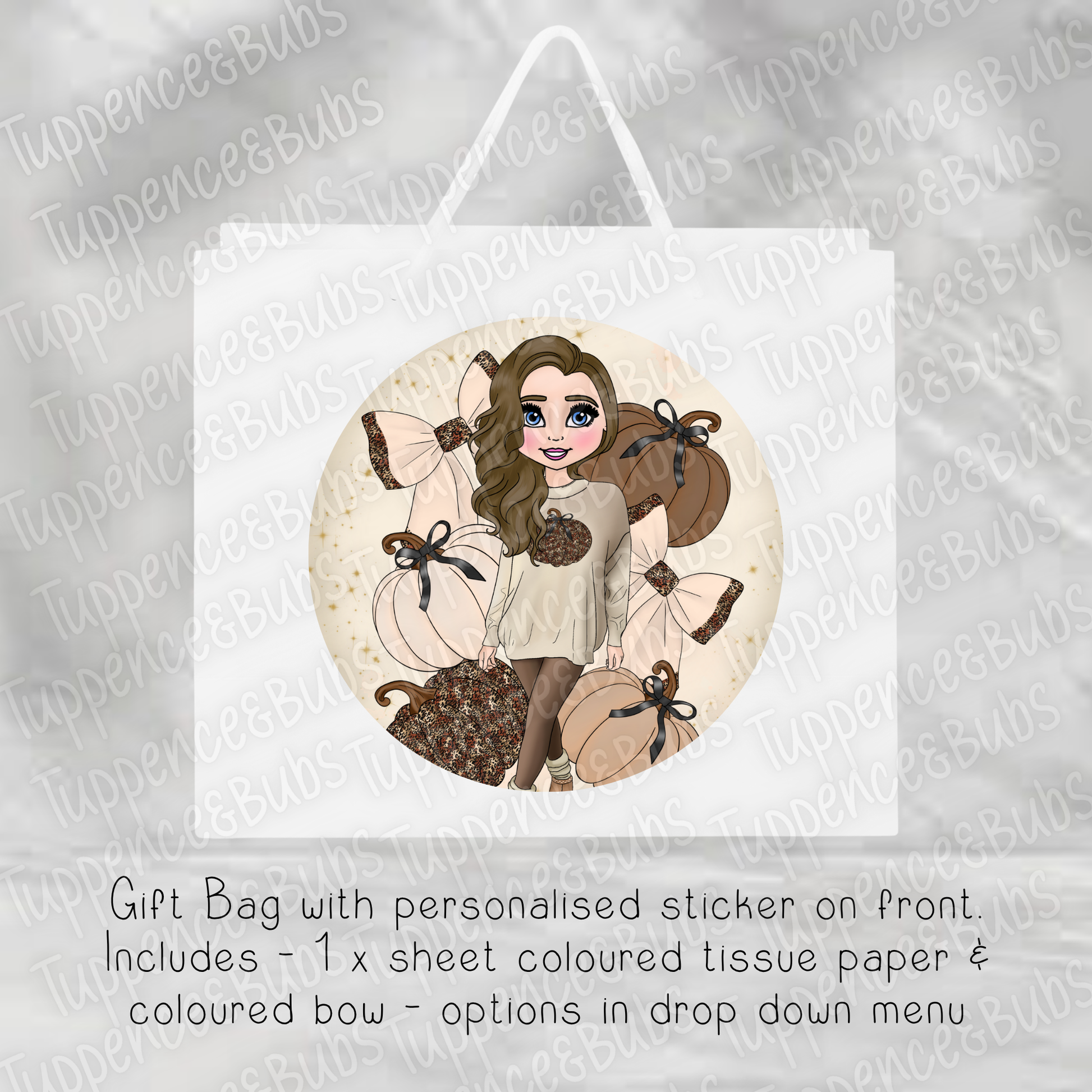 Beige Brown Bows Pumpkin Themed Gift Bag - 2 sizes