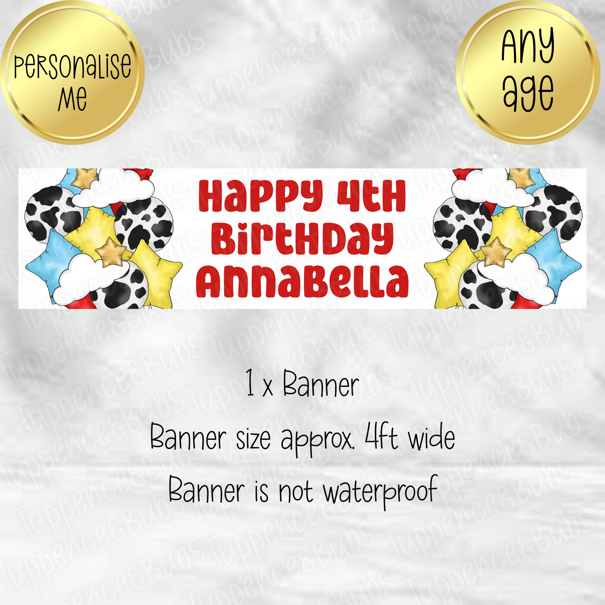 Due to Banners being personalised - No refunds or returns are accepted - unless I have made an error
