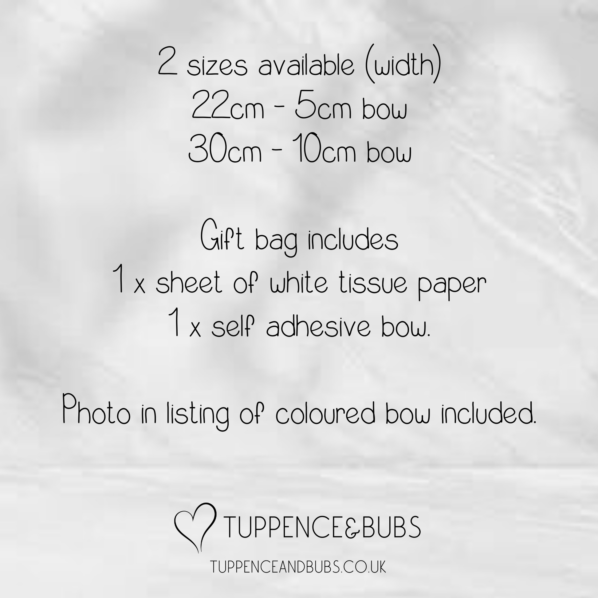 - 1 x bow included with gift bag - colour of bow matches theme of gift bag