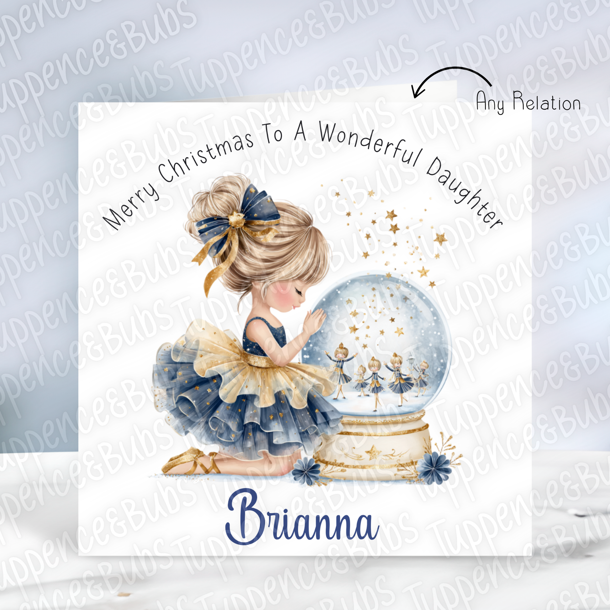 Navy & Gold Ballerina Christmas Card - 4 Hair Colours